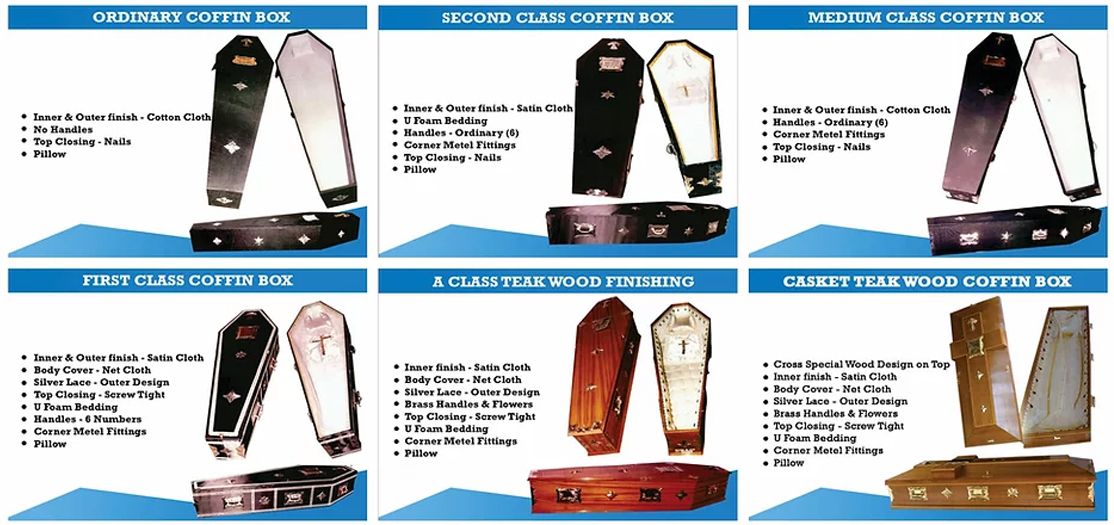 We offer variety of Coffins starting with basic model to the high-end premium model with best quality and workmanship